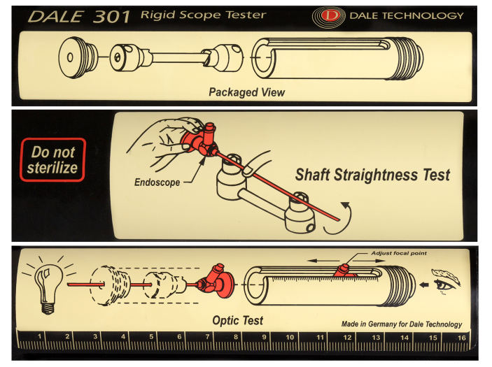 Por fin existe una herramienta simple tanto para el personal técnico como no técnico para realizar una evaluación rápida de la mayor parte de endoscopios rígidos. Con el Dale301, es fácil detectar problemas durante las inspecciones de recepción, después de reclamaciones, antes y después de servicio y durante la rutina de una inspección del mantenimiento preventivo.